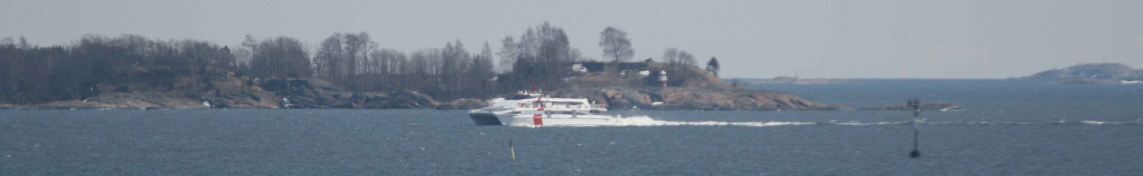 Am Ostermontag 2012 braust HSC Merilin durch den finnischen Meerbusen (oben). Am selben Tag entstand das untere Foto. Es zeigt den Katamaran kurz vor dem Festmachen am Makasiini Terminal von Helsinki, im Hintergrund die Stockholm-Fähre "Silja Serenade".