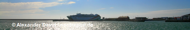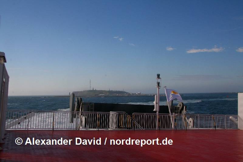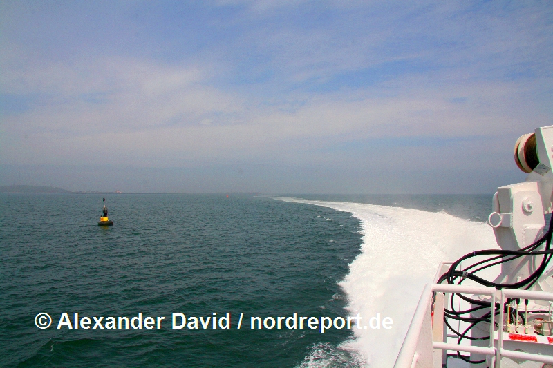 Pünktlich um 17:30 Uhr neigte sich mit dem Einfahren der Autorampe die Stippvisite des "Dolphin Jet" auf Deutschlands Hochseeinsel auch schon wieder dem Ende entgegen. Um 17:45 Uhr war die Rampe eingefahren und der Katamaran steuerte aus dem Südhafen hinaus auf die offene Nordsee.