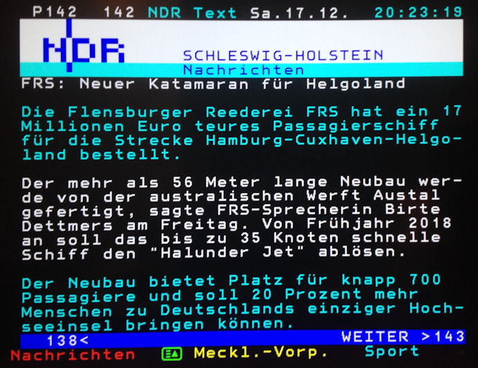 Dezember 2016 - FRS: Neuer Katamaran für Helgoland
