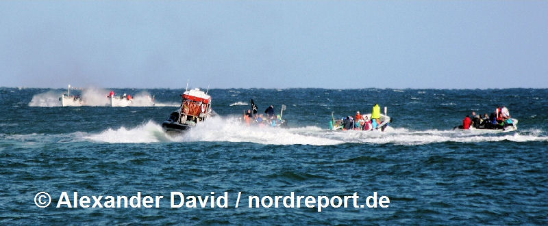 Die Börteboote nehmen die Passagiere auf, die nicht nur nah dran, sondern auch live dabei sein wollen.
