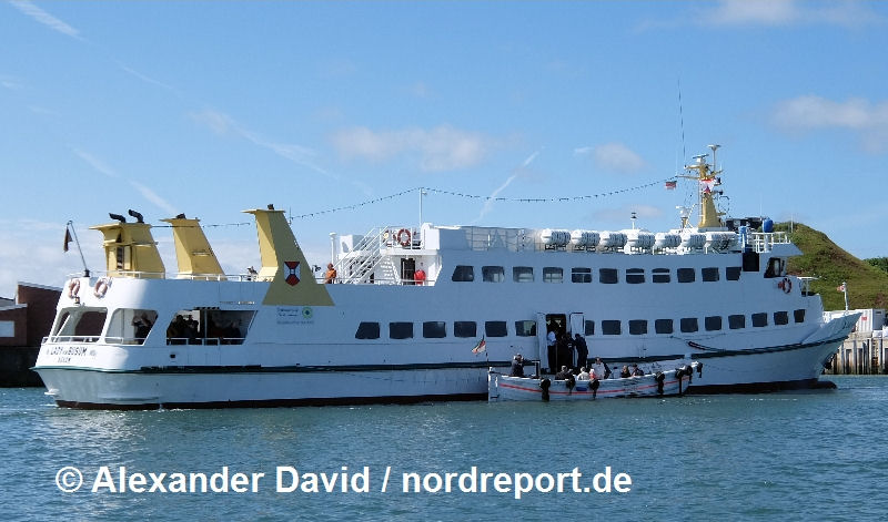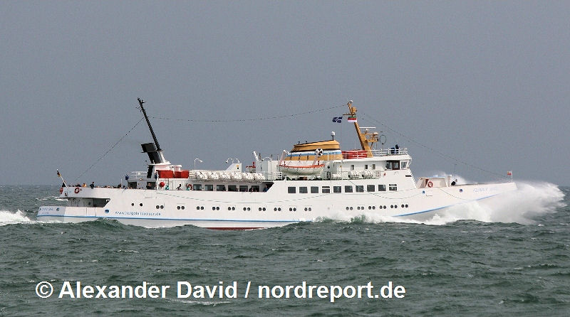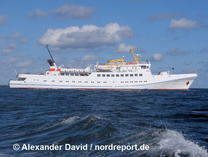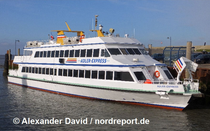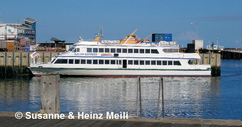 Im Sommerbericht dieses Jahres fehlte ein Foto des "Adler-Express" im Helgoländer Binnenhafen, da sich das Schiff wetterbedingt der Ablichtung mehrfach entzog. Susanne und Heinz Meili erwischten den "Adler-Express" aber schließlich doch noch und stellten das Bild nordreport.de zur Verfügung. Dank und Gruß in die Schweiz.