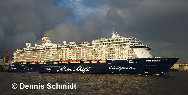 Die brandneue "Mein Schiff 5" legt vor einer bedrohlich wirkenden Wolkenformation
