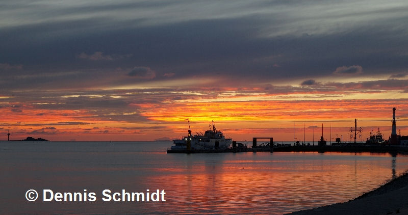 So gibt es immer wieder Tage, an denen es wie oben sehr übersichtlich auf der Reede und an der Landungsbrücke zugeht. Wenn man die Insel kennen und lieb gewonnen hat, als sich noch mehr als zehn Schiffe auf der Reede tummelten, blickt man ein bißchen wehmütig vom Falm und vermißt die attraktive Silhouette der weißen Bäderdampfer, die aneinander gereiht vor der Insel lagen. Ohne Zweifel ist die Insel im Wandel und insbesondere der Anlandungsbetrieb ist davon in starker Weise betroffen. Zumindest für Traditionalisten eine Situation, mit der man sich erstmal arrangieren muß.