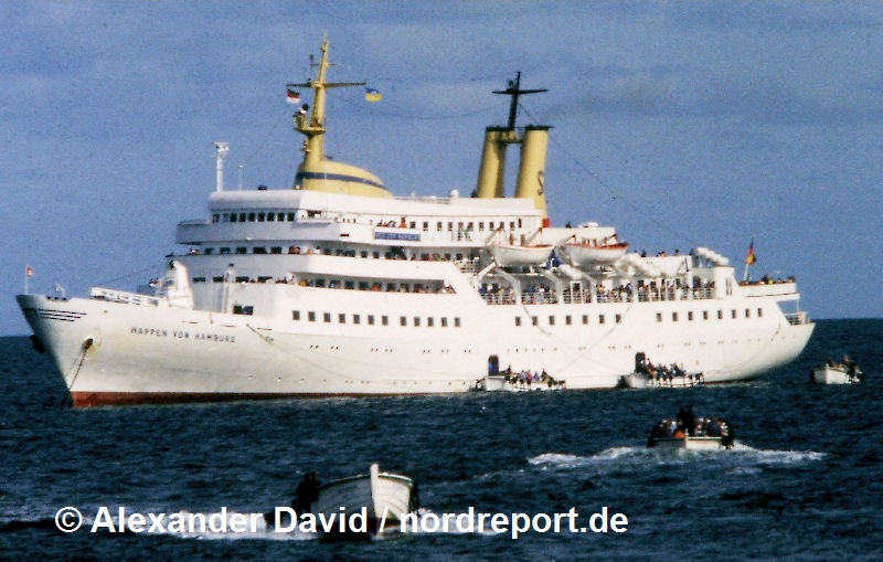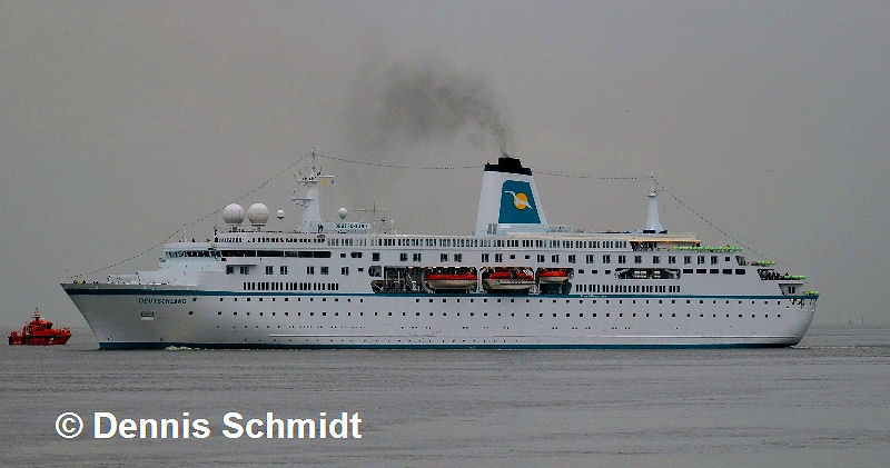 Kurz vor Ende der Deilmann-Ära kam es am 25. August 2014 zu einem eindrucksvollen und bisher letzten Helgoland-Anlauf der "Deutschland". Es folgte der Verkauf in die USA und der Einsatz als schwimmende Universität im Winterhalbjahr unter dem Namen "World Odyssey". Im Sommer wurde das Schiff aber nach Deutschland verchartert, im Jahr 2015 an Plantours, dieses Jahr an Phoenix, und kreuzt unter dem alten Namen wieder in heimischen Gefilden. Auch im nächsten Sommer wird das Schiff für Phoenix von Bremerhaven aus im Einsatz sein. Anläufe in Helgoland sind nicht geplant.