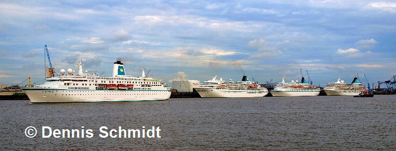 Am 31. Juli 2016 kam es zu einem spektakulären Phoenix-Vierfachanlauf in Bremerhaven. Somit war die gesamte Seereisen-Flotte des Kreuzfahrtveranstalters Phoenix vereint: M/S Deutschland, M/S Amadea, M/S Albatros und M/S Artania (v.l.n.r.).