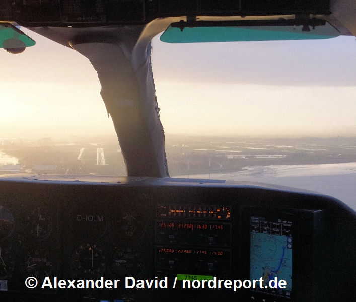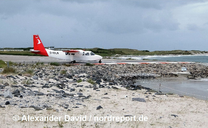 Kurz vor Einstellung des Flugverkehrs nach Bremerhaven setzt die D-IOLM "Emden" aus Helgoland kommend zur Landung auf dem Flugplatz Luneort an.