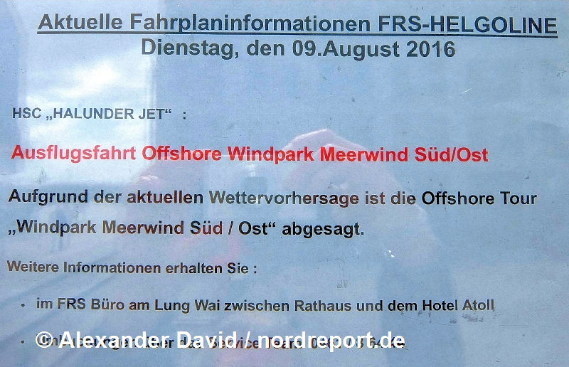Am 9. August 2016 z.B. konnte der "Halunder Jet" aufgrund zu hoher Wellen nicht zum Windpark auslaufen.