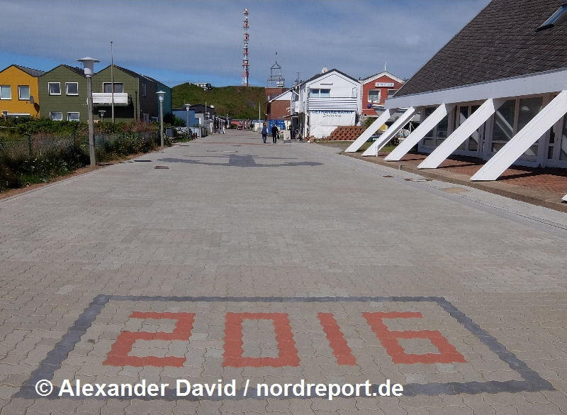 Mit der Anlandung der Passagiere von der "Helgoland" im Südhafen wird der Bereich zwischen Hafenamt und Ortskern jetzt deutlich mehr frequentiert als in früheren Zeiten. Somit ist dieser Bereich mehr denn je zum Entrée geworden, über das die Gäste womöglich zum ersten Mal die Insel betreten. So ist es folgerichtig, daß der bisher etwas antiquiert wirkende Bodenbelag der Hafenstraße zeitgleich zur Inbetriebnahme des neuen Schiffes optisch aufwertet wurde und ein komplett neues Straßenpflaster erhielt (Foto oben). Der Trennung zwischen Bürgersteig und Straße mit Kantstein gehört der Vergangenheit an, der Fußgängerbereich erstreckt sich nun niveaufrei über die gesamte Breite.