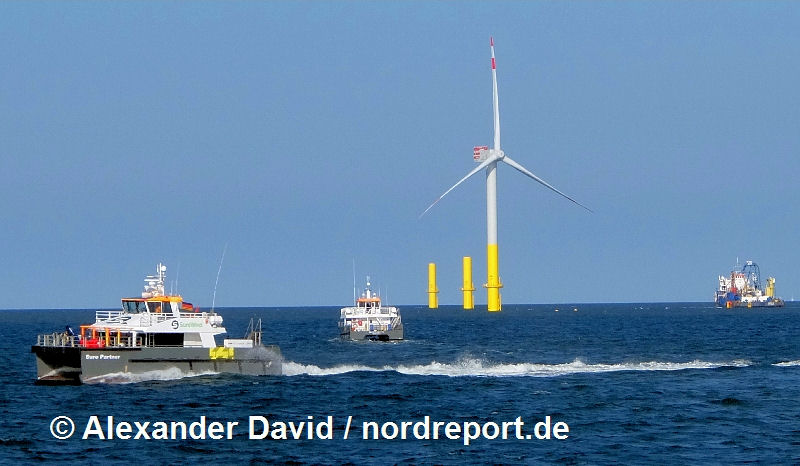 Wer mit der "Fair Lady" über Bremerhaven anreist, hat übrigens den Ausblick auf einen Offshore-Windpark inklusive. Das Schiff kommt direkt am in Bau befindlichen Windpark "Nordergründe" vorbei (Foto oben), der sich zwischen Jade- und Wesermündung etwa 15 Kilometer östlich von Wangerooge befindet.