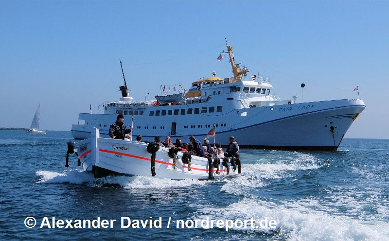 Am 20. Mai 2017 hat die "Fair Lady" erstmals in diesem Jahr von Bremerhaven den Roten Felsen angelaufen, sodaß nun wieder täglich drei Schiffe auf der Reede ankern und mit den Börtebooten aus- und eingebootet werden. Auch am 18. und 19. Mai konnte man übrigens schon drei Schiffe auf der Reede sehen, denn die "Fair Lady" steuerte in diesem Jahr noch vor der ersten Bremerhaven-Fahrt die Insel zwei Tage von Hooksiel an.